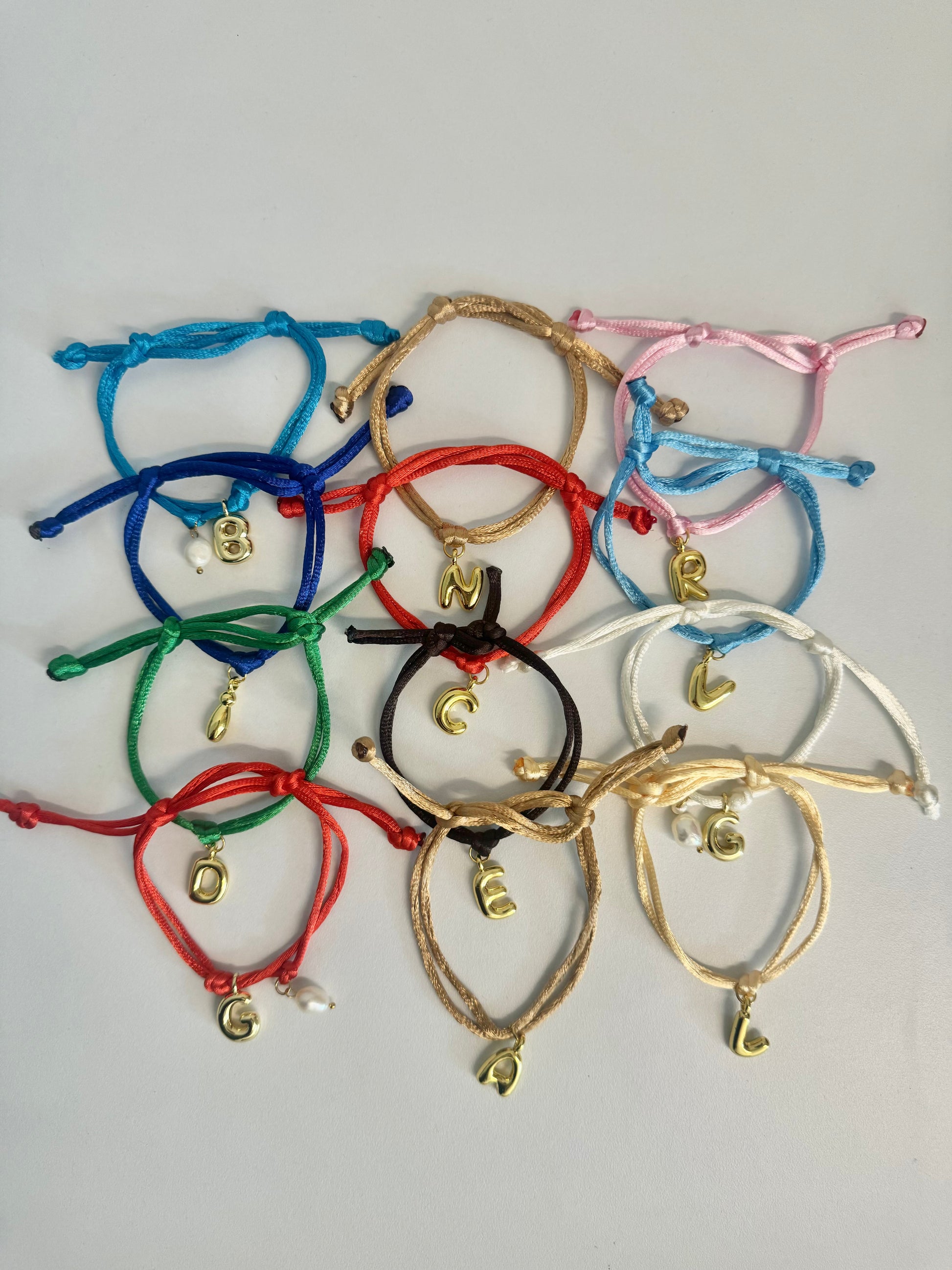 Pulsera ajustable hilo nylon personalizada con letra elegante de inicial en acero inoxidable